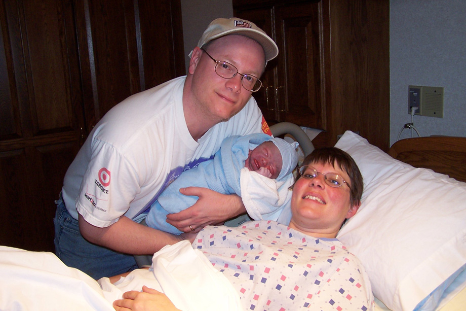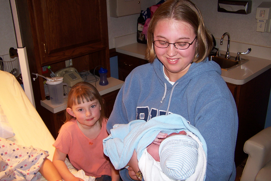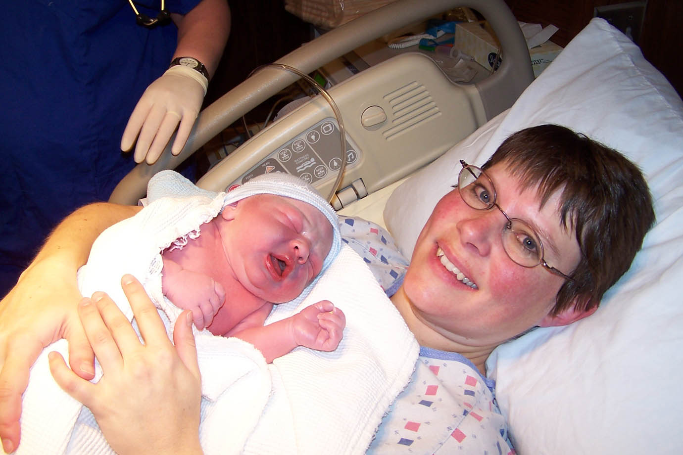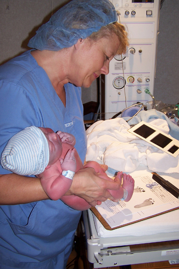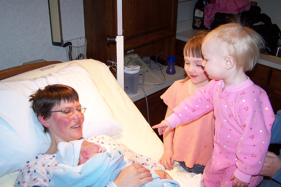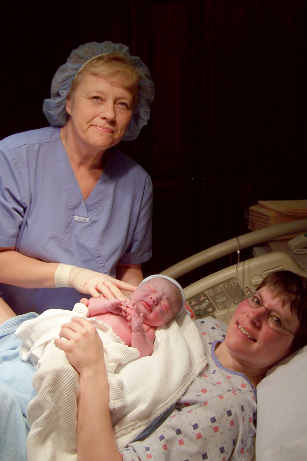 That early evening, she was moving along and all I could remember as I was jumbled out of sleep..."Mike! My water just broke!" That was at 2:35AM. A quick scramble in the house as the kids got awakened and dressed, all the junk thrown in the van and down the street we went. Nice having the hospital just down the road right in town!